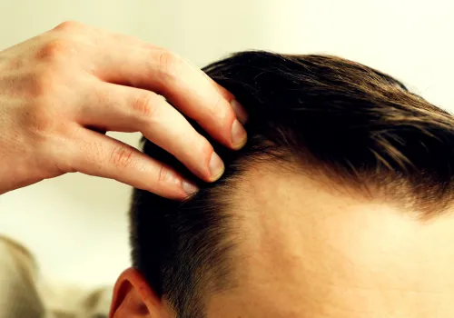 You may notice thinning hair, increased shedding, receding hairline, or bald patches.